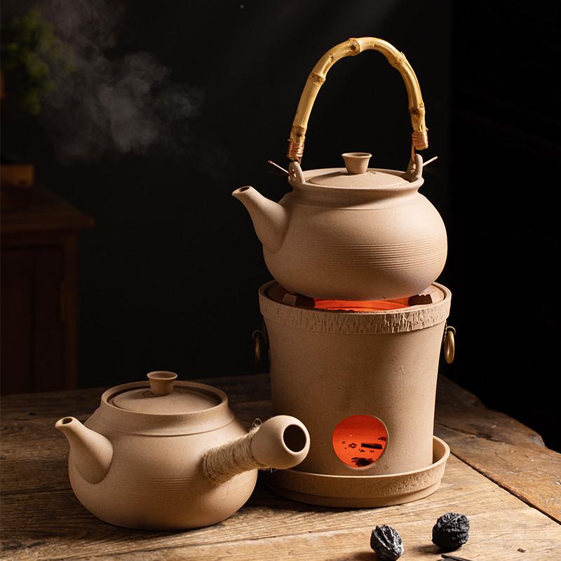 薄胎跳盖陶瓷烧水壶双耳碳炉煮茶套组家用客厅阳台素色土陶养生壶