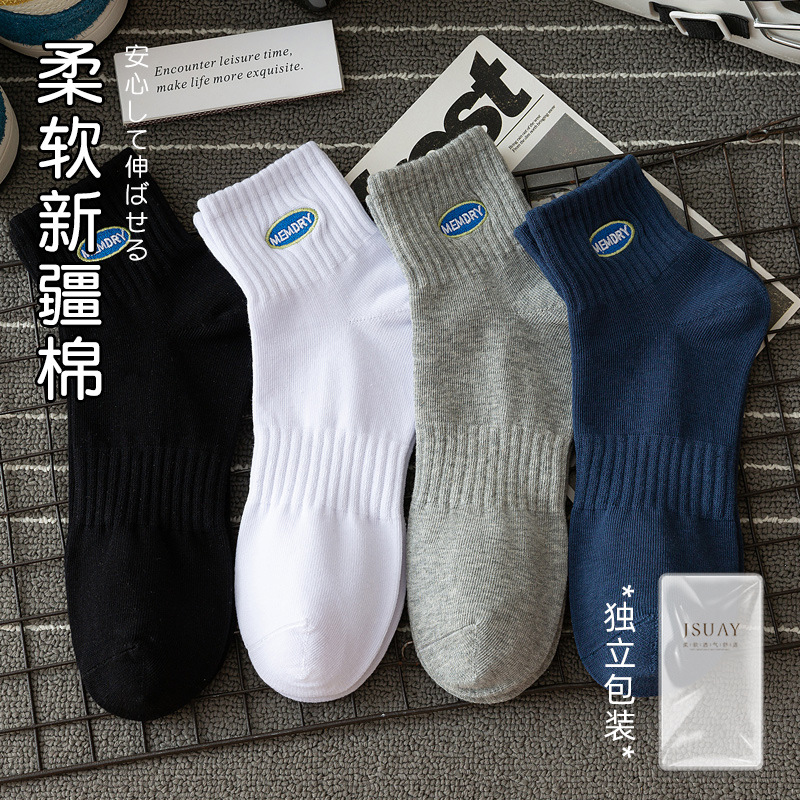 袜子男秋冬新款中筒袜束腰抗起球棉袜字母刺绣潮流袜跑步运动袜