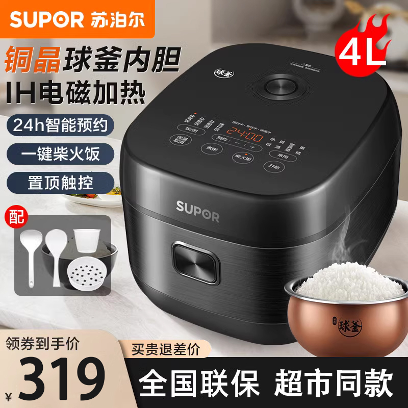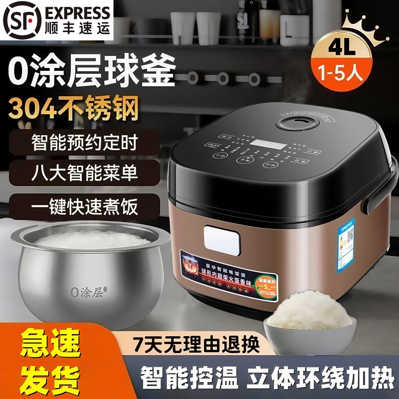 洋泊尔电饭煲电饭锅小型0涂层4升家用多功能IH压力4L不锈钢内胆