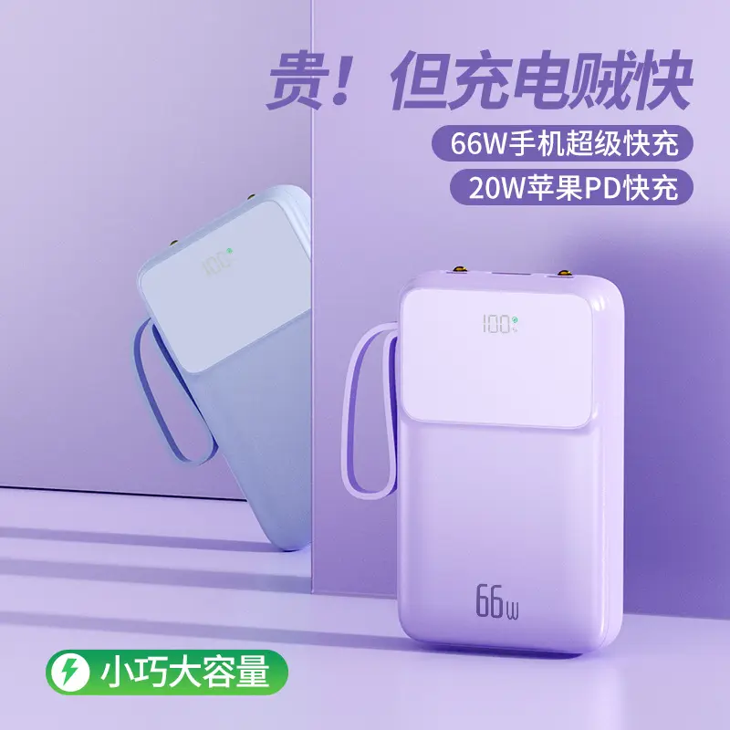 小巧66W超级快充充电宝自带线移动电源10000毫安定制LOGO