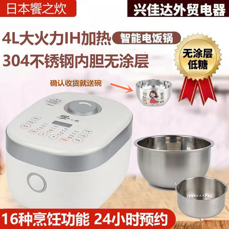 日本饗之炊电饭锅IH加热304不锈钢内胆无涂层4L家用智能4升电饭煲
