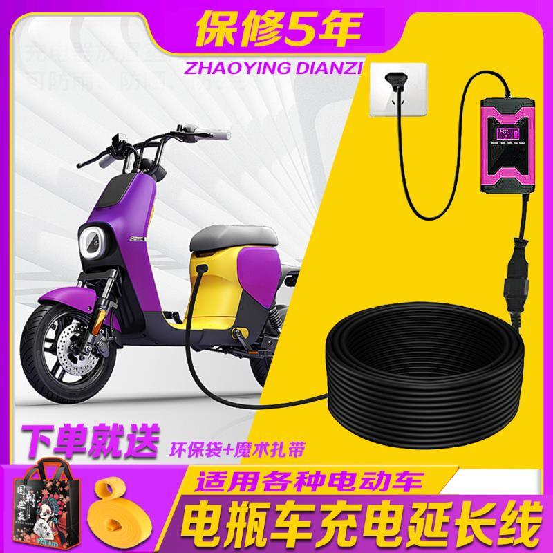电动车摩托车电瓶充电器延长线高楼防水室外户外公母头加长拖线板