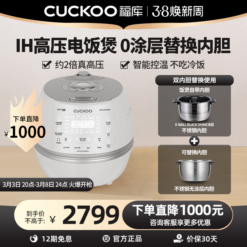 CUCKOO福库韩国原装进口高压IH电饭锅无涂层替换双内胆家用电饭煲
