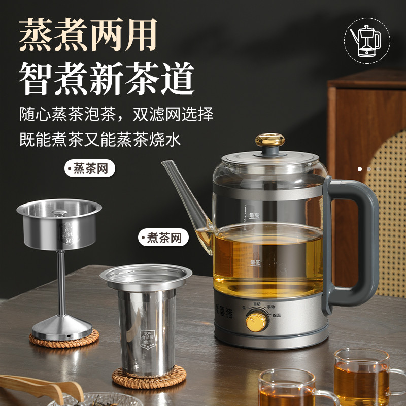 喜猪煮茶器家用办公室蒸茶壶养生壶电茶炉蒸汽喷淋黑白茶2025新款