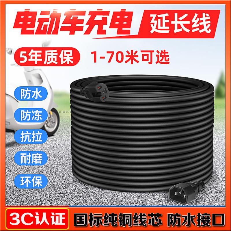 电瓶车电动三轮车充电器延长线防水户室外公母头国标电瓶车延长