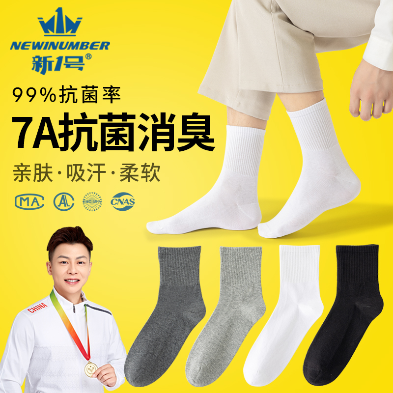 新一号抗菌消臭百分百正品棉袜休闲运动袜全棉男士袜子男款中筒