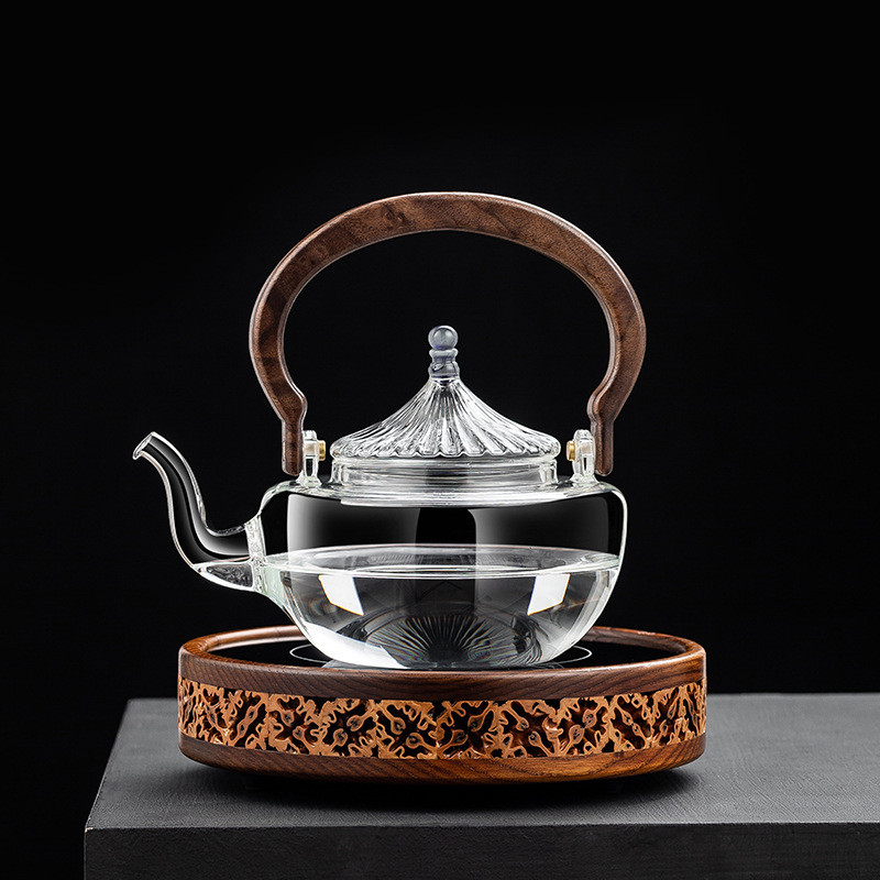 世器玻璃煮茶壶养生煮茶器家用小型核桃木电陶炉围炉烧水煮茶套装
