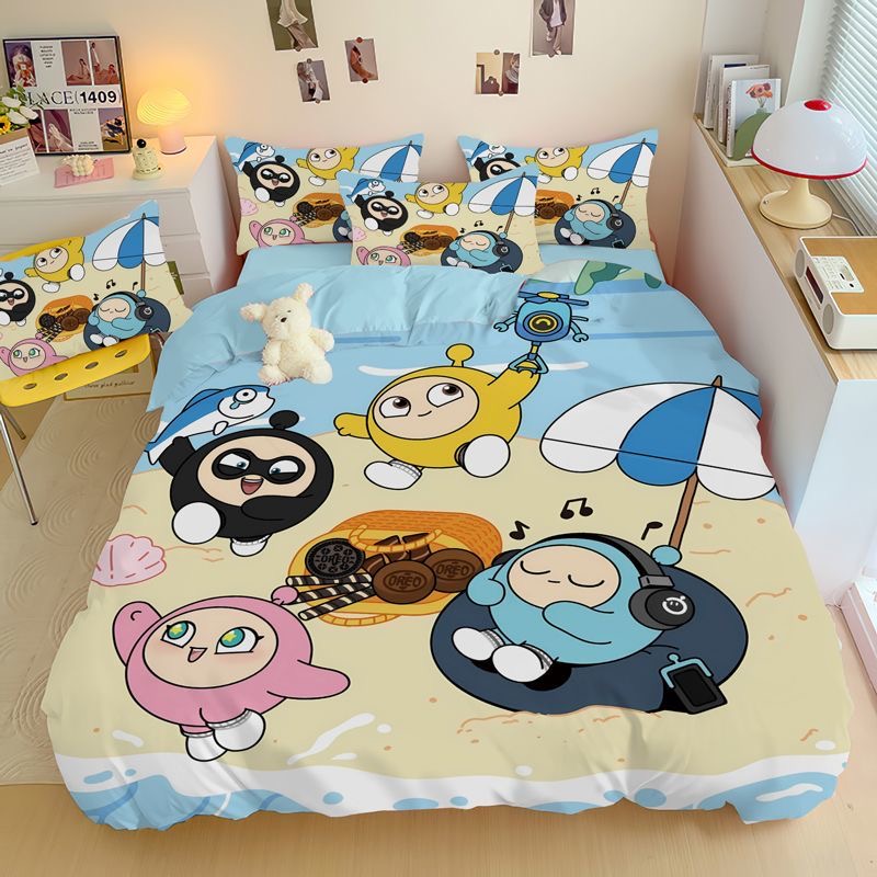 蛋仔派对卡通游戏纯棉四件套儿童被套学生宿舍全棉床单床笠三件套