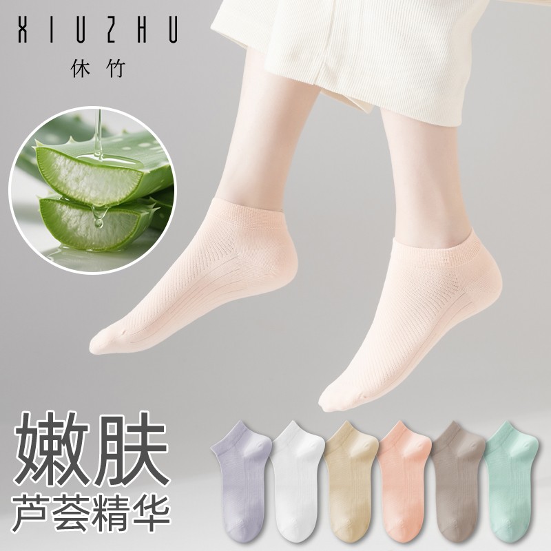 休竹精油香薰柔软商务中纯色运动舒适吸汗透气女袜子纯棉