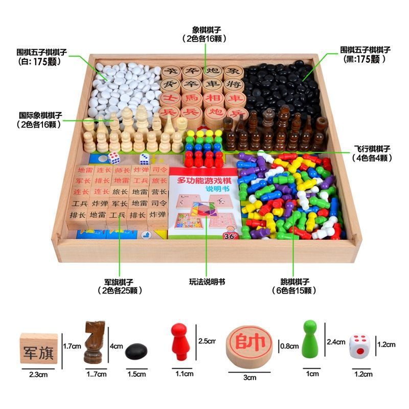 五子棋多功能桌面游戏棋益智玩具大号榉木围棋象棋儿童跳棋飞行棋