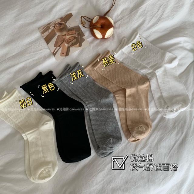 【港维斯】春秋薄款美拉德纯色中筒袜透气运动简约百搭堆堆袜女