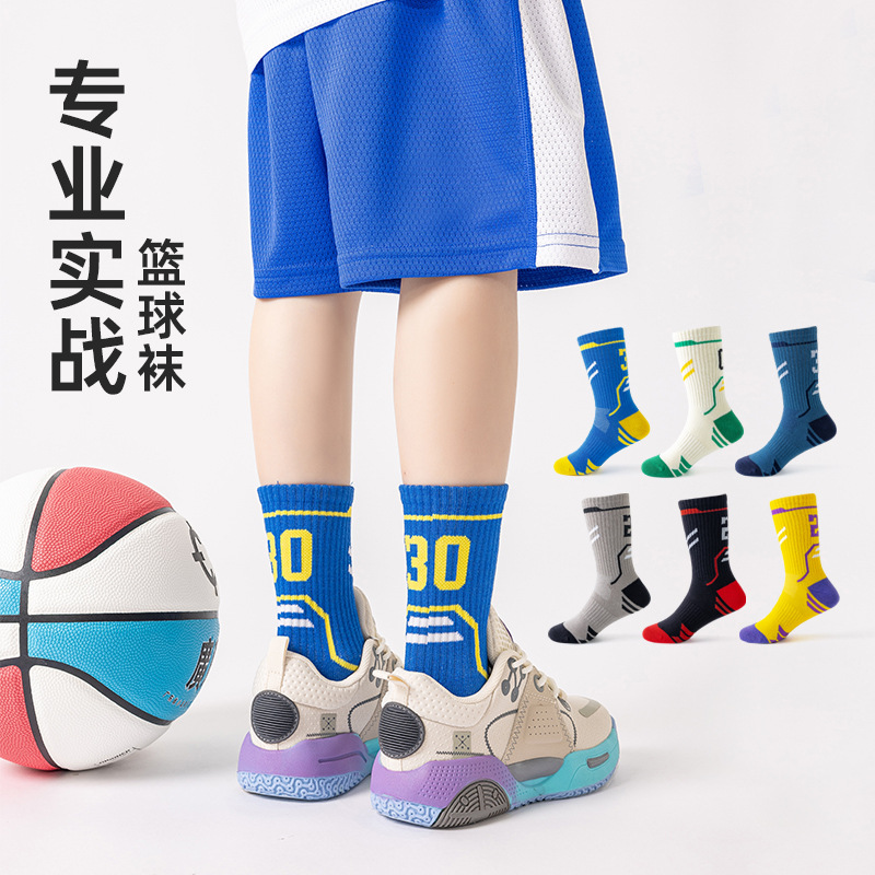 秋款儿童袜子防滑篮球中筒袜吸汗透气防臭运动袜透气网眼棉袜