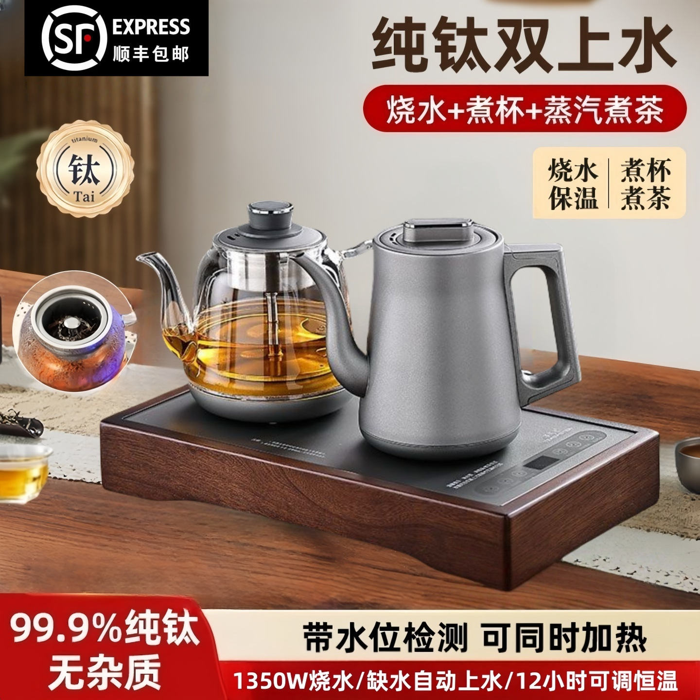 电茶炉全自动家用嵌入式抽水纯钛烧水壶电热茶台一体底部上水恒温