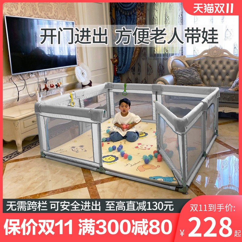宝宝围栏儿童游戏婴儿爬行垫防护栏家H用开门安全护栏乐园地上两