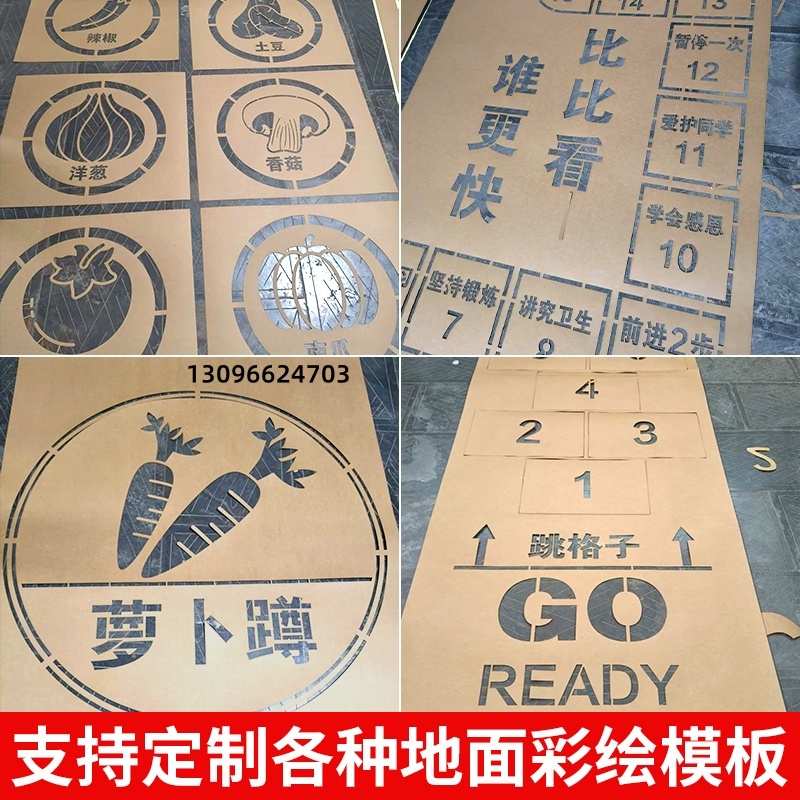 地面游戏彩绘模板跳房子喷漆镂空学校课间体育立定跳远图案涂鸦