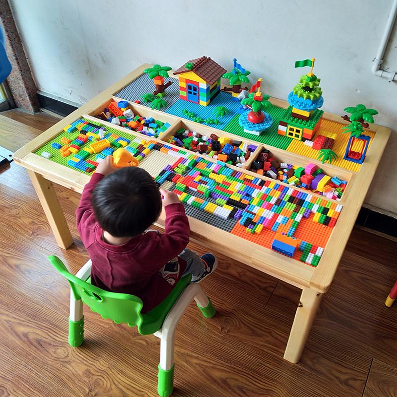 儿童玩具积木桌子实木兼容某高大小颗粒游戏智力拼搭拼插多功能台