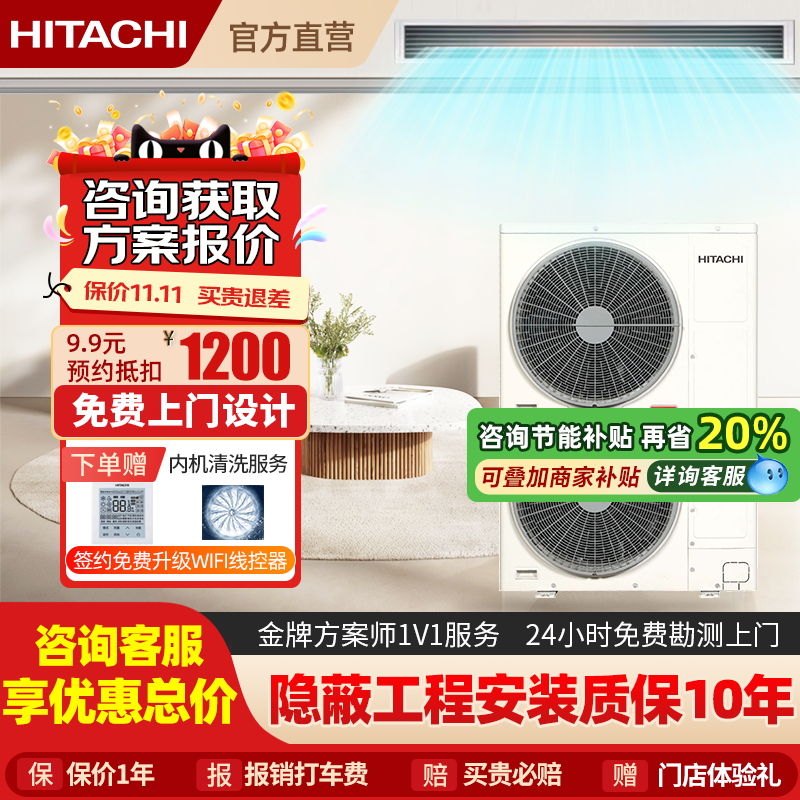 日立中央空调大5匹6匹一拖五VAM尊睿家用室内多联机变频四室一厅
