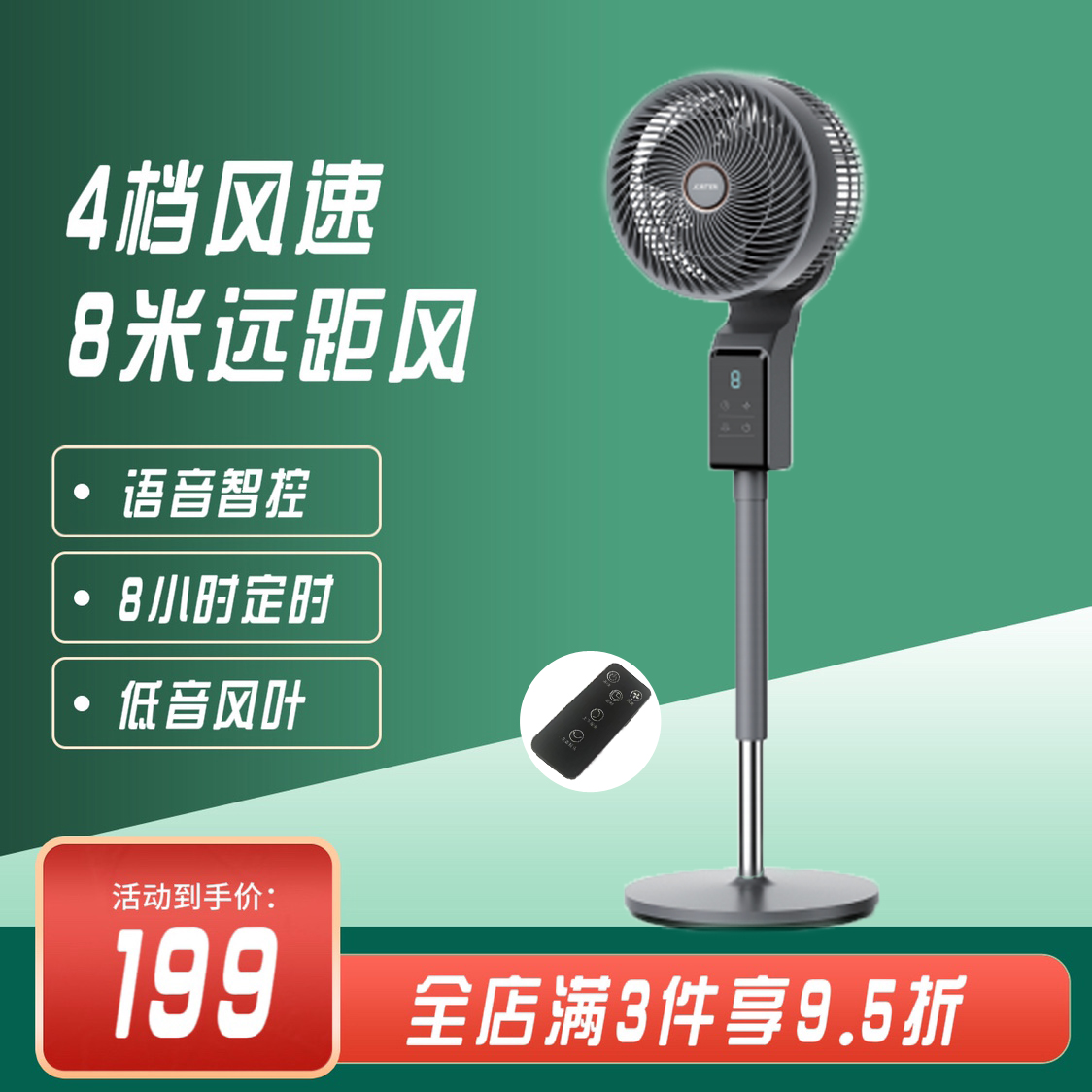 [线下同款]京腾循环扇遥控语音四档风速摇头升降家用电风扇轻音