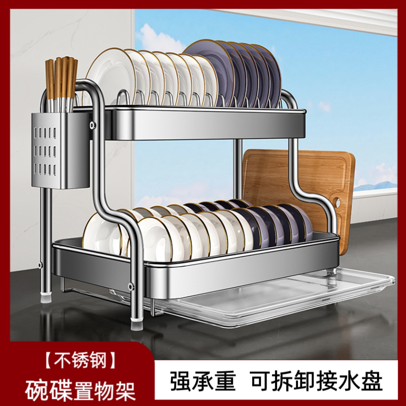 加厚不锈钢厨房置物架碗碟碗盘沥水架家用台面多功能放碗架收纳架