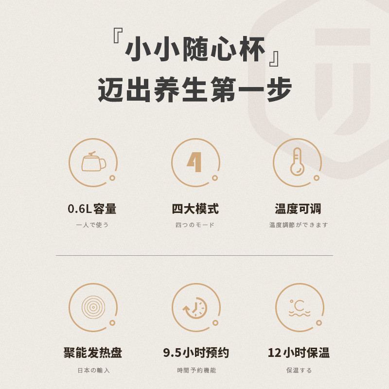 坂田釜作养生杯电炖杯SCL-KT01小型煮茶煮粥热牛奶迷你养生壶加热