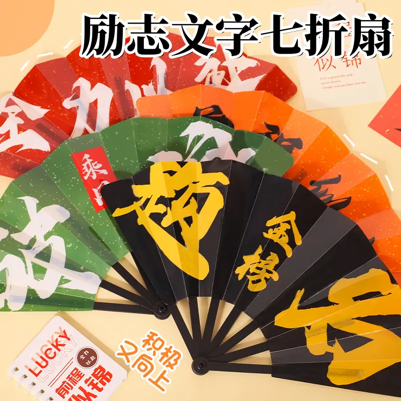 中国风七折扇 国潮励志文字折叠扇子学生手持小扇子礼品
