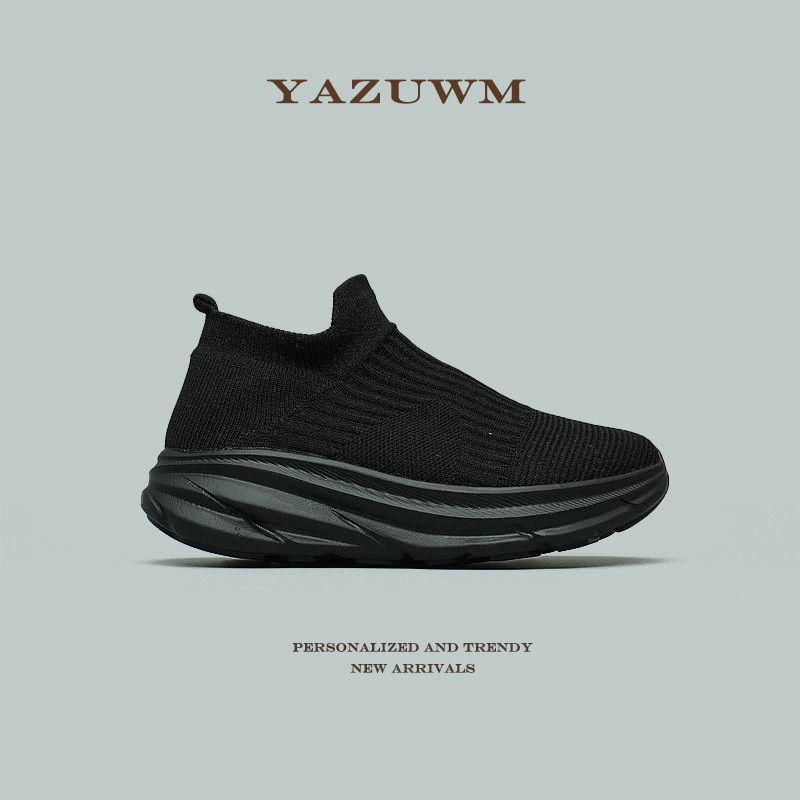 飞织弹力网面厚底健身一脚蹬袜子鞋男女时尚百搭无鞋带运动休闲鞋