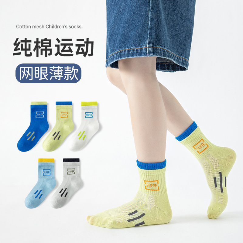 男童袜子夏季新款a类棉吸汗运动条纹网眼中大童宝宝网眼袜子