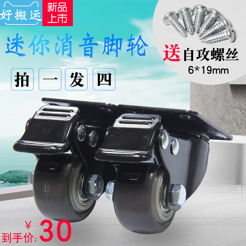 静音橡胶万向刹车轮聚氨酯定向脚轮茶几家电花架1.6寸2寸小轮轱辘