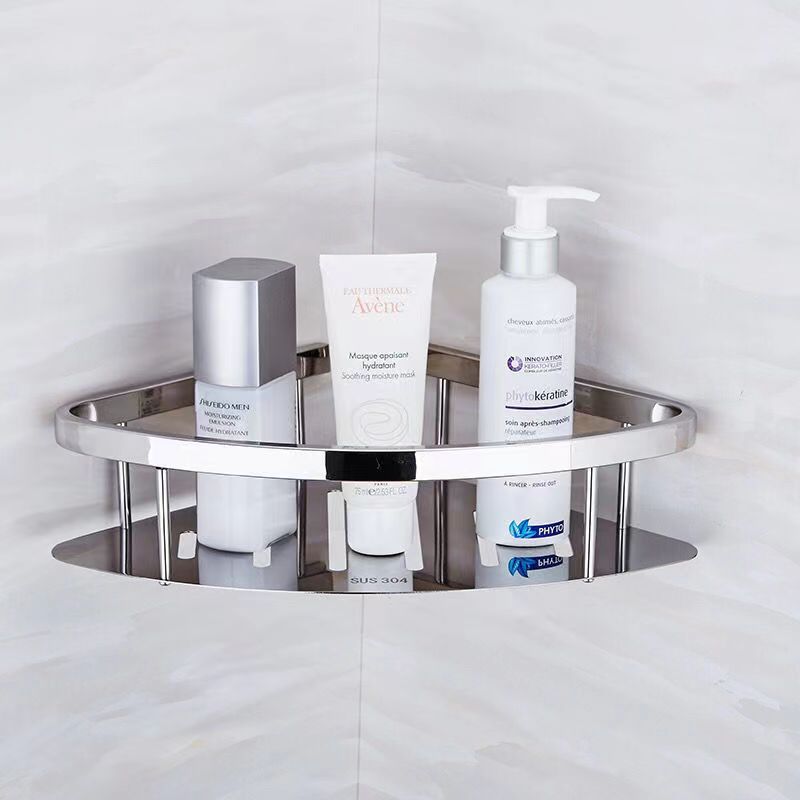 洗手间加厚304不锈钢置物架卫生间壁挂打孔卫浴收纳墙角三角架篮