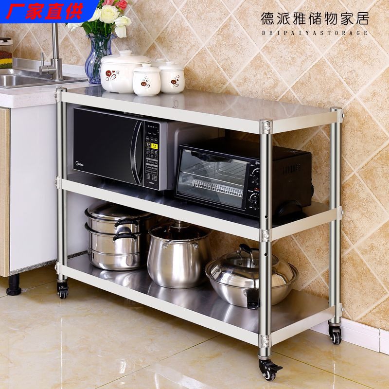 不锈钢厨房置物架落地带轮子整理货架微波炉烤箱架橱柜放菜锅架子
