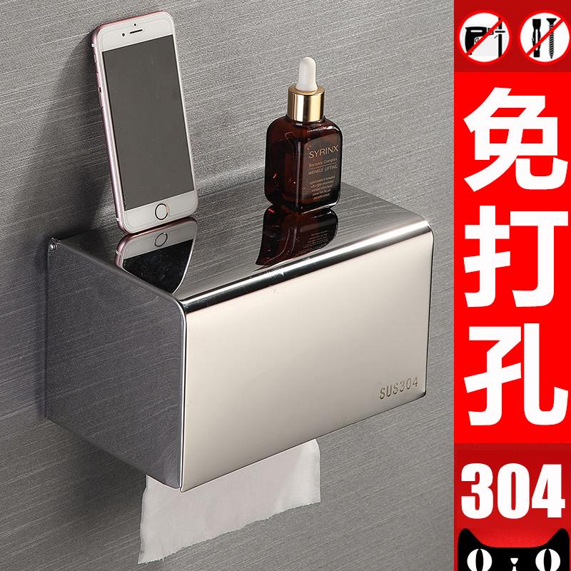 304不锈钢厕所抽纸盒放卫生纸置物架壁挂免打孔防水 卫生间纸巾盒