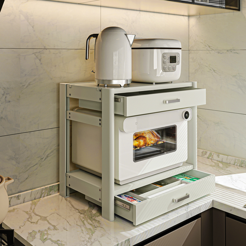高端厨房微波炉置物架台面放电饭锅一体烤箱架子带抽屉电器收纳架