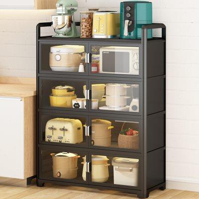 多功能餐边柜厨房收纳置物架落地多层带门防尘锅具电器杂储物柜子