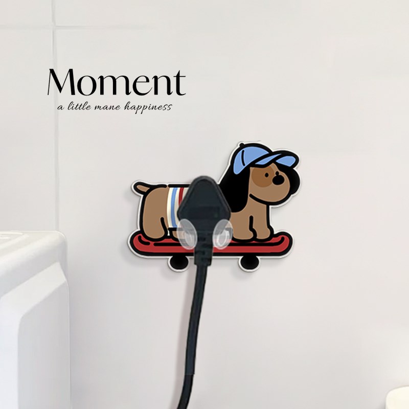 腊肠狗厨房电源插头挂钩免打孔电器插座固定器可爱充电线收纳挂架