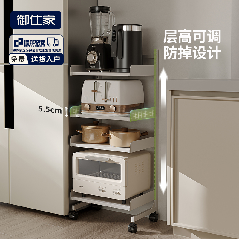 御仕家厨房多层夹缝小推车收纳锅具电器微波炉置物架烤箱落地架子