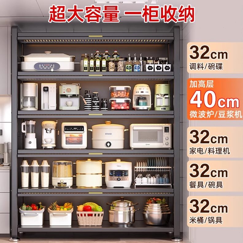 甄选厨房置物架带柜门落地多层多功能橱柜微波炉烤箱电器置物储物