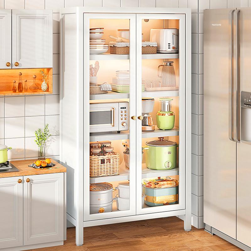 厨房置物架落地多层带门收纳柜子多功能橱柜微波炉碗碟电器储物柜