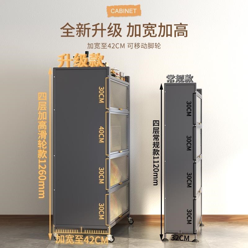 厨房置物架碗架落地翻盖带柜门微波炉多功能收纳V架电器储物橱柜