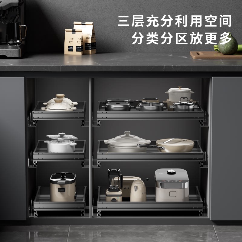 意铂尼厨房橱柜抽屉置物架地柜电器锅拉篮抽拉式铝合金收纳拉篮