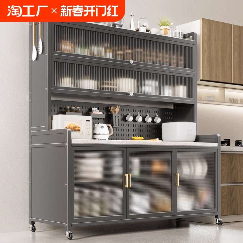 新款厨房置物架餐边储物柜加厚落地烤箱微波炉电器柜子橱柜收纳柜
