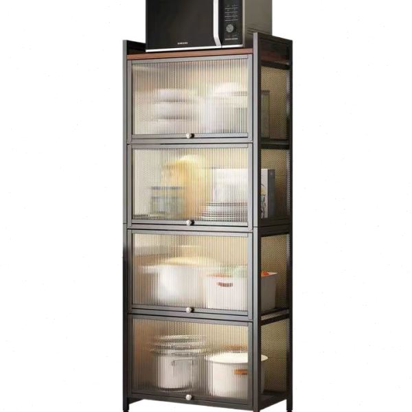 收纳柜厨房落地多层 家用置物架翻盖式带门 储物柜放碗柜锅具电器