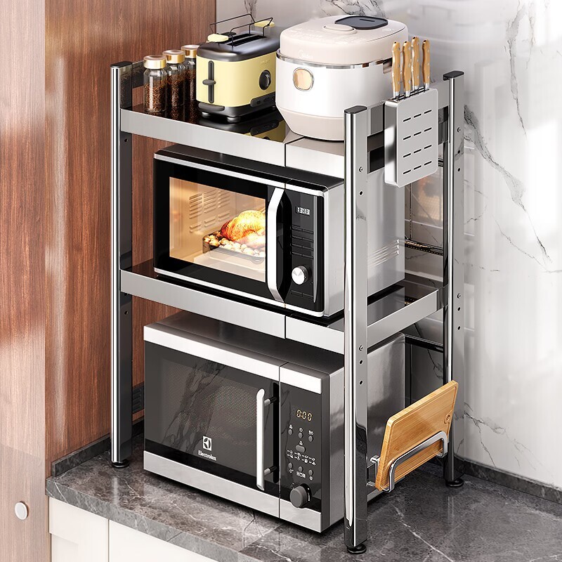 304不锈钢厨房微波炉置物架家用台面电饭锅架子电器收纳烤箱支架