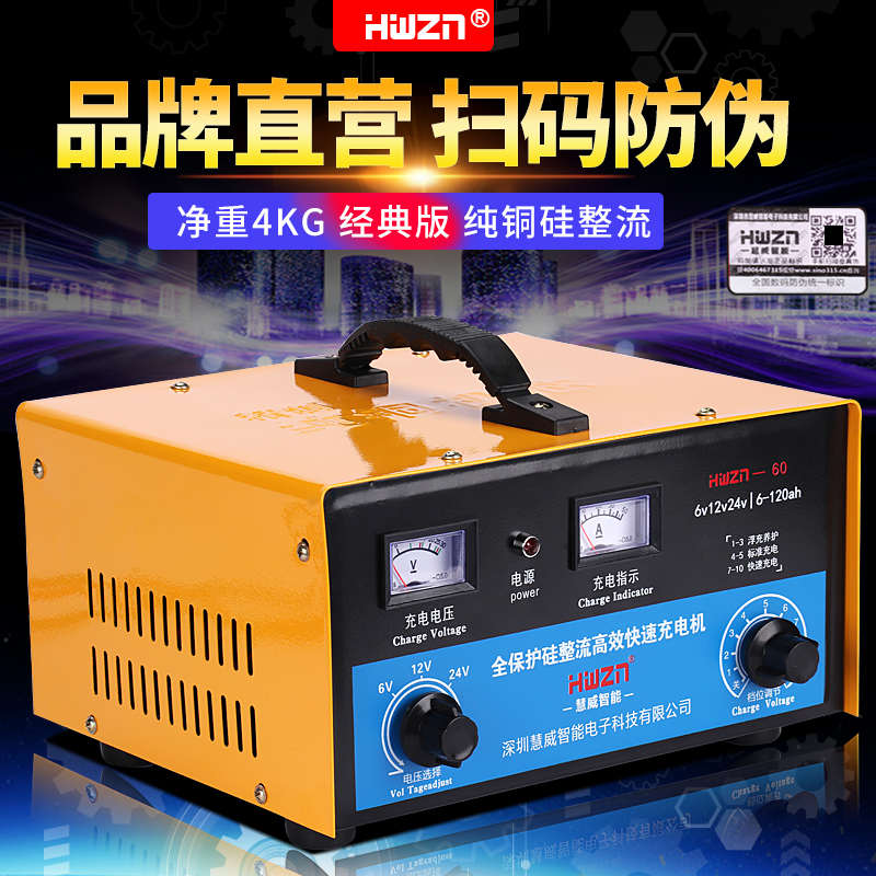 纯铜汽车电瓶充电器12V24V通用充满自停断电大功率纯铜快速充电机