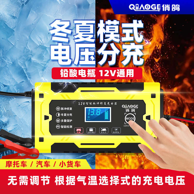 汽车电瓶充电器12v伏摩托车智能自动修复脉冲型铅酸蓄电池充电机