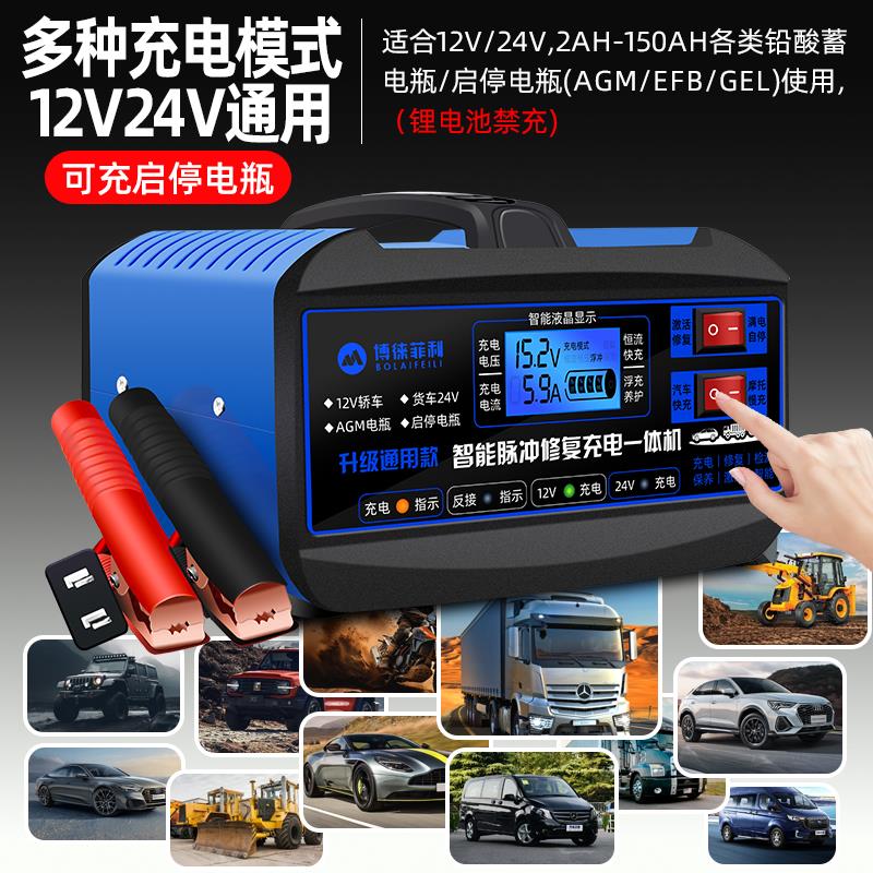 汽车电瓶充电器12v24v摩托车充电机全自动大功率启停蓄电池通用型