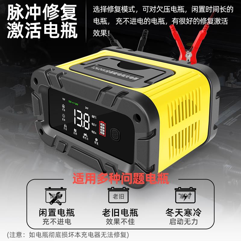 汽车电瓶充电器12v24v摩托车充电机全自动大功率启停蓄电池修复型