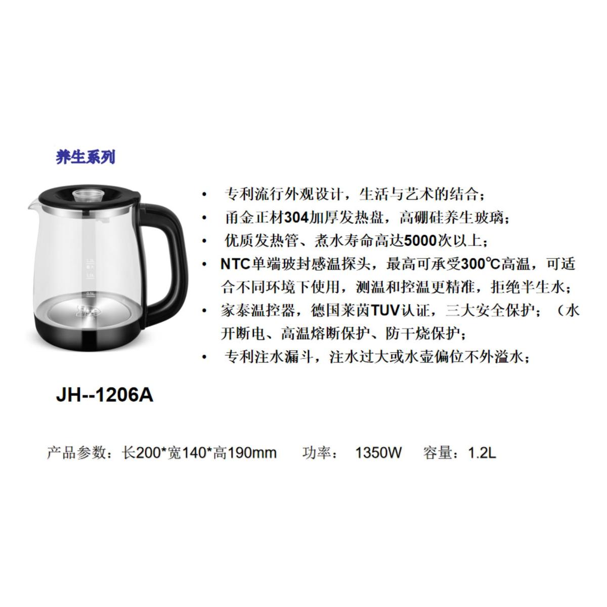 茶吧机专用烧水壶饮水机配件JH1206A蓝光双层玻璃保温1.2L大容量