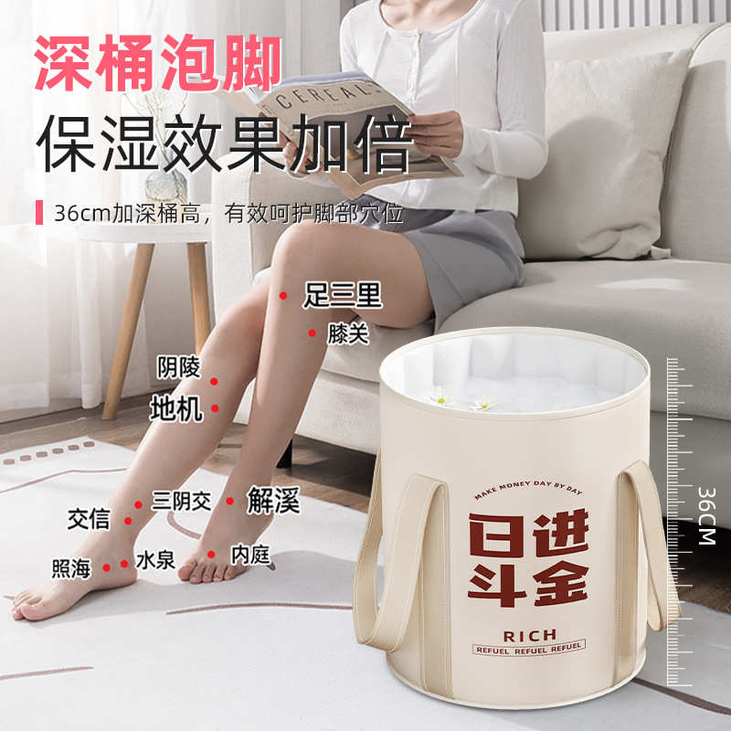 折叠泡脚桶旅行便携保温五层泡脚袋加高加深洗脚桶家用带盖足浴盆
