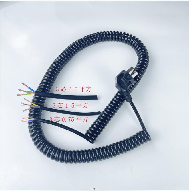 弹簧线 2/3芯带插头吹风机家用电源线电饭锅可伸缩螺旋纯铜电缆线