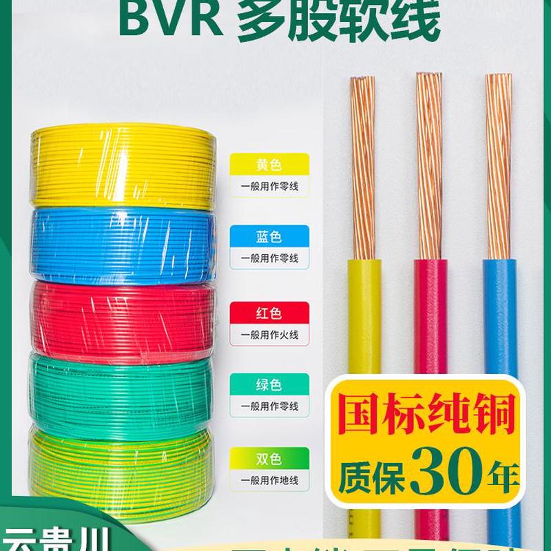 昆明电缆厂电线BVR国标铜芯软线家用铜线2.5 4 6 10 16平方接地线
